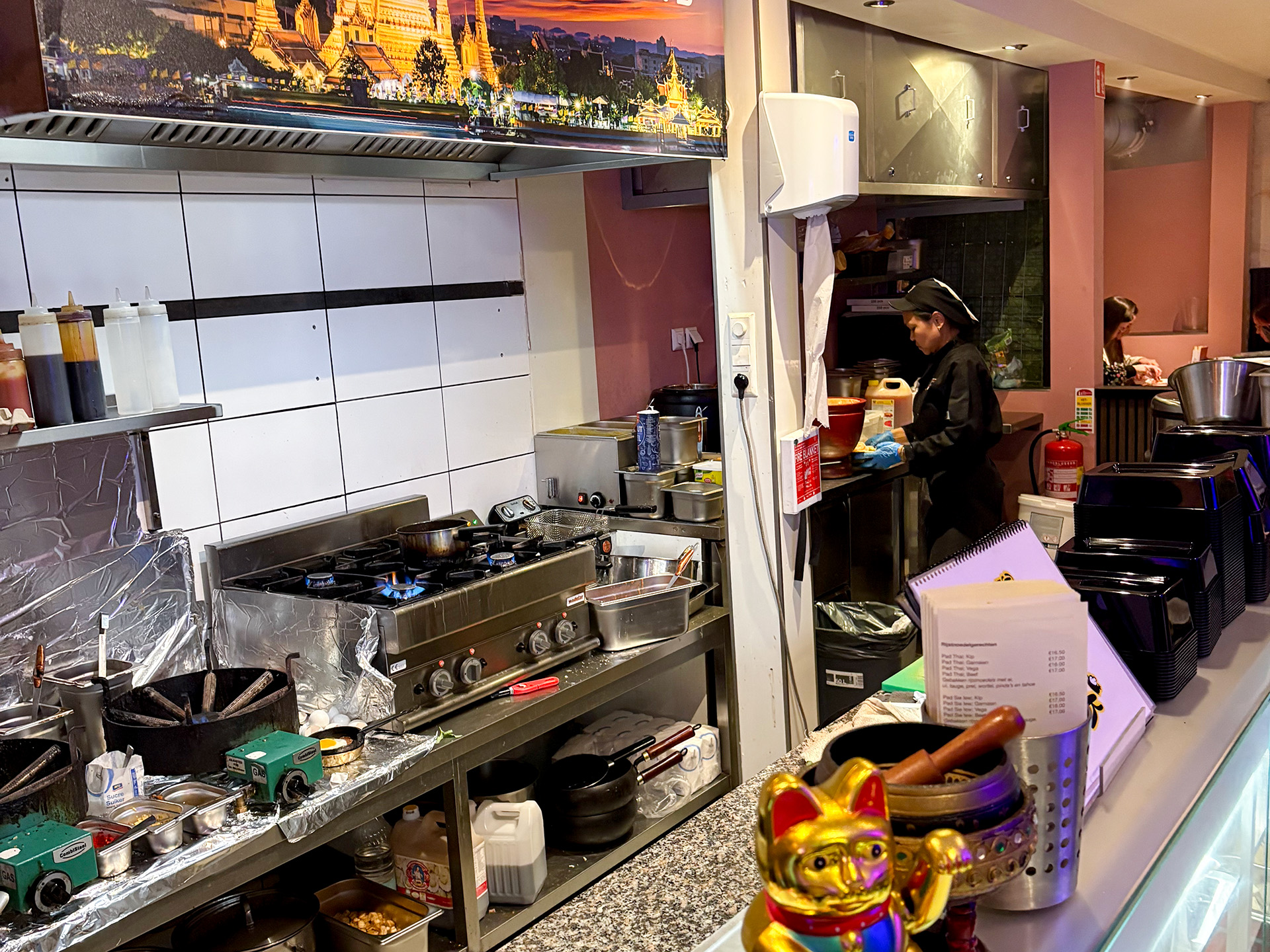 Nog voordat je goed en wel binnen bent, weet je eigenlijk al waar je bent beland. De geur van groene curry en verse pepers komt je keihard tegemoet. Niet subtiel, niet verfijnd, maar direct en vol in je gezicht.