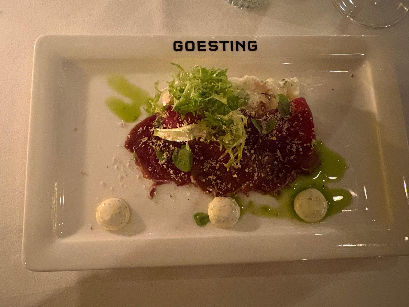 De keuken van Goesting is uitgesproken klassiek Frans. Veel boter, rijke sauzen, slakken op de kaart, vis, wild. Dat klassieke karakter schrikt eerder af dan dat het lokt, maar juist dat blijkt achteraf onterecht. Goesting doet namelijk precies wat het belooft, zonder ironie of moderne trucjes, en doet dat consequent goed. Het is geen restaurant dat met trends meewaait, maar een plek waar vakmanschap en herkenbaarheid centraal staan.