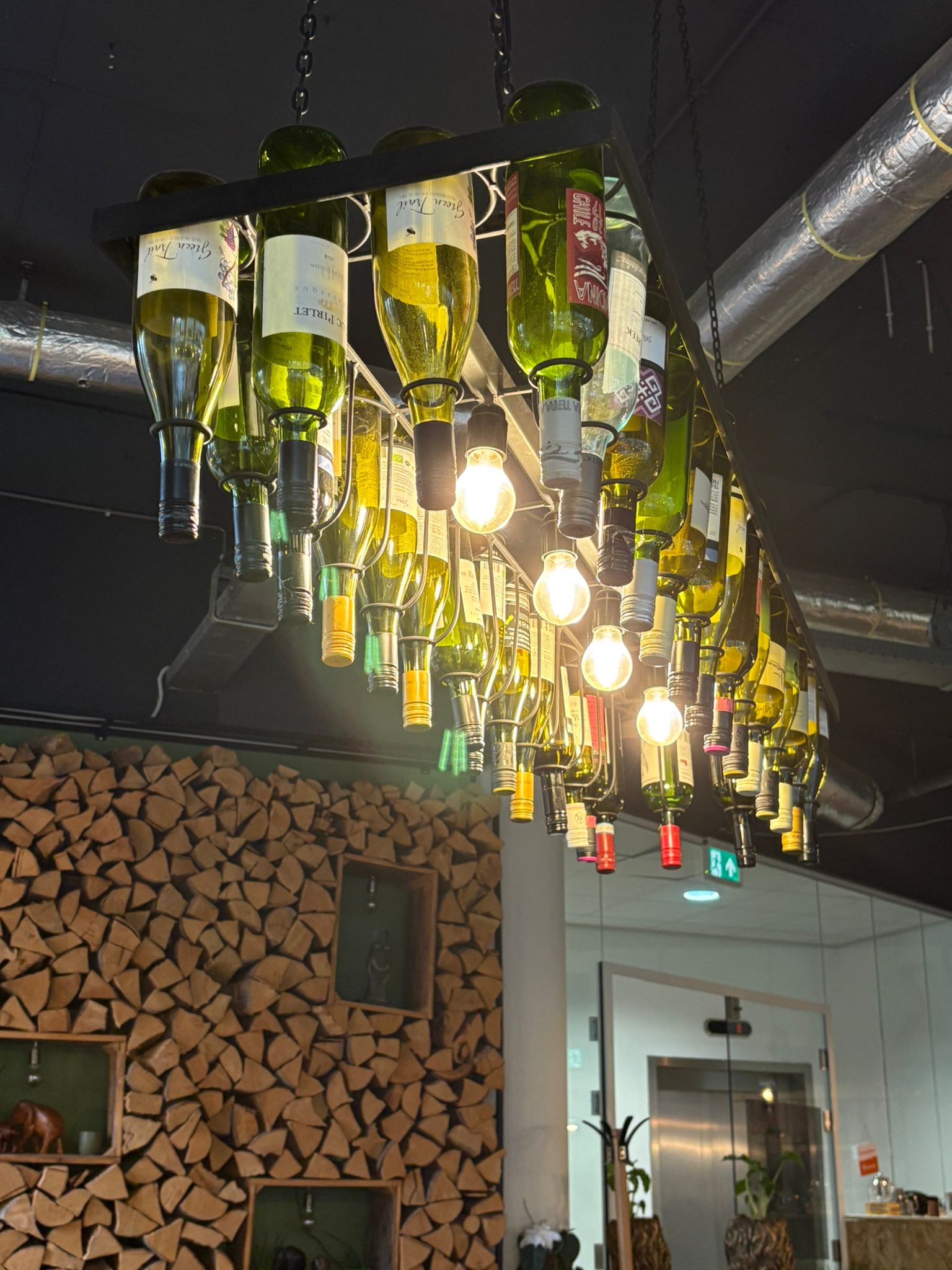 De eigenaren, Abdel en Rania, vluchtten vijftien jaar geleden vanwege de oorlog in Soedan naar Nederland. Ze begonnen met een cateringbedrijf en openden in 2022 Napata, gevestigd in een kantoorpand aan de Euclideslaan. Voor wie niet alle Utrechtse straten uit het hoofd kent: dat is op bedrijventerrein Rijnsweerd, recht tegenover het provinciehuis. De locatie is… nou ja, ongelofelijk. Een enorm bedrijventerrein vol zorginstellingen, advocatenkantoren en notarissen. Parkeren is er vrijwel onmogelijk, want al die bedrijven hebben hun eigen afgesloten parkeerplaatsen. Voor je het weet sta je als een boef op de parkeerplaats van Parnassia, terwijl je dochters hongerig in de auto zitten. Binnen is het dan weer hartstikke leuk, met gekke details zoals een muur van houtblokken en een lamp van wijnflessen – hoewel ze geen alcohol schenken.