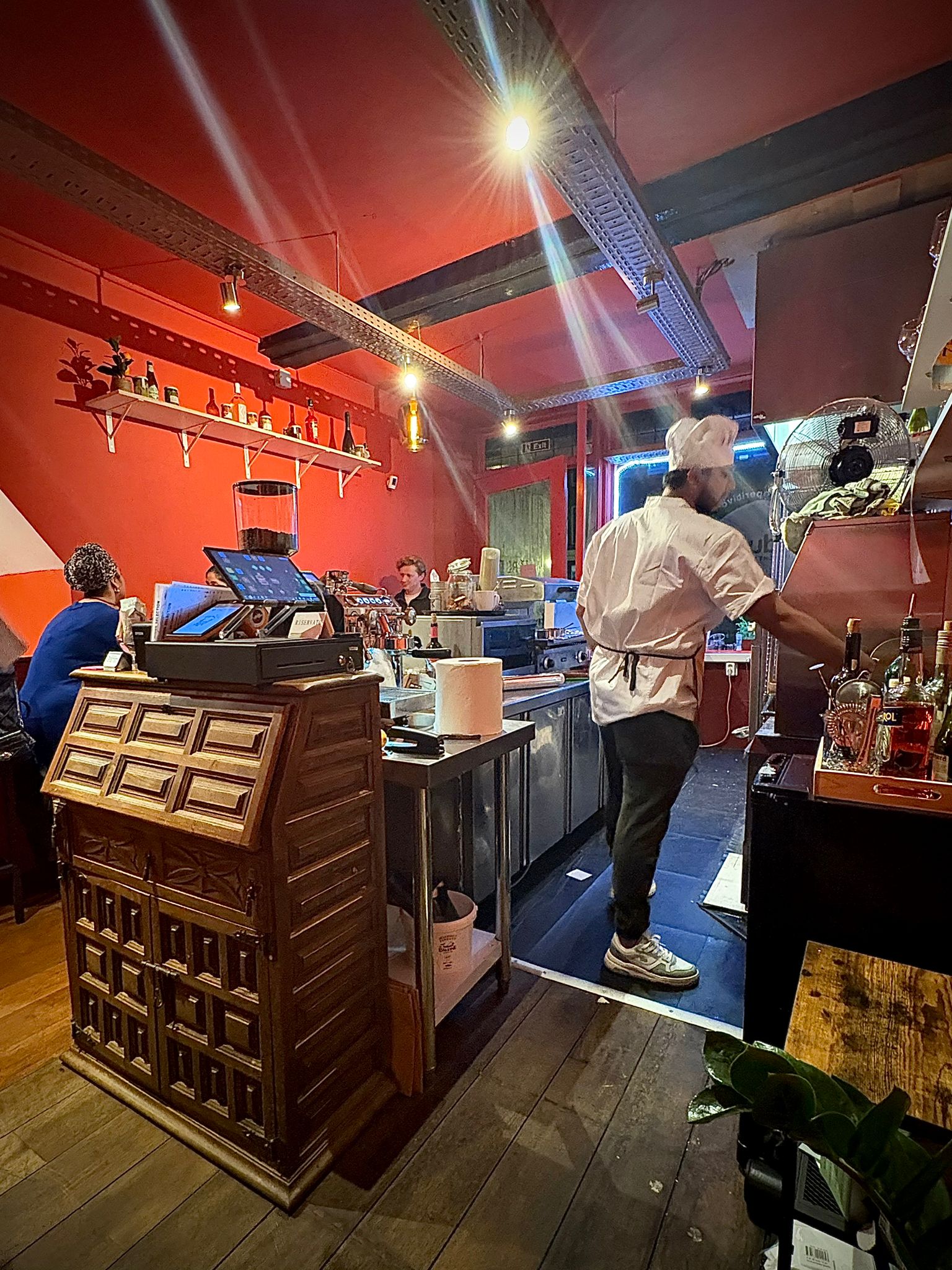 Het menu is klein, maar doeltreffend: antipasti, gnocchi, pasta’s, wijn. Dat klopt bij het concept. Maar als je het volledige idee wil ervaren, moet je eigenlijk meerdere gangen proeven. En dat botst met de ruimte. Dit is geen plek voor een avond uitwaaieren. Dit is een plek waar het ritme hoog ligt, en waar je voelt dat de tafel zo weer door moet. Dat komt door de ruimte, niet omdat Ndujame dat niet wil – het is compact en voelt soms (te) druk.