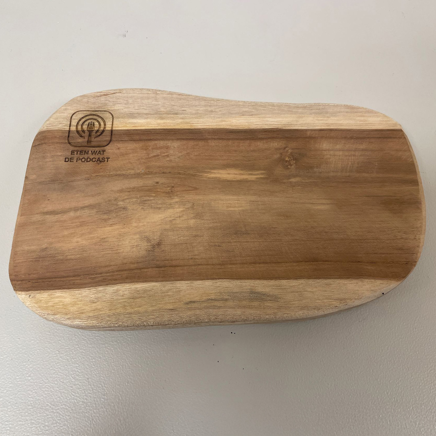 Deze hoogwaardige houten borrelplank is met zorg geproduceerd en voorzien van een subtiele lasergravure van Eten wat de podcast. Gemaakt van massief hout met een natuurlijke nerf, waardoor elke plank een volledig eigen uitstraling heeft. Ideaal voor kazen, charcuterie, dips, brood of wat er verder op tafel mag verschijnen tijdens een avond uitgebreid borrelen.