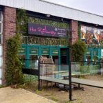 Hoewel de locatie in een verbouwde garage zit, is het interieur een aangename verrassing: modern ingericht met Marokkaanse elementen, veel planten en hippe roze neonletters.